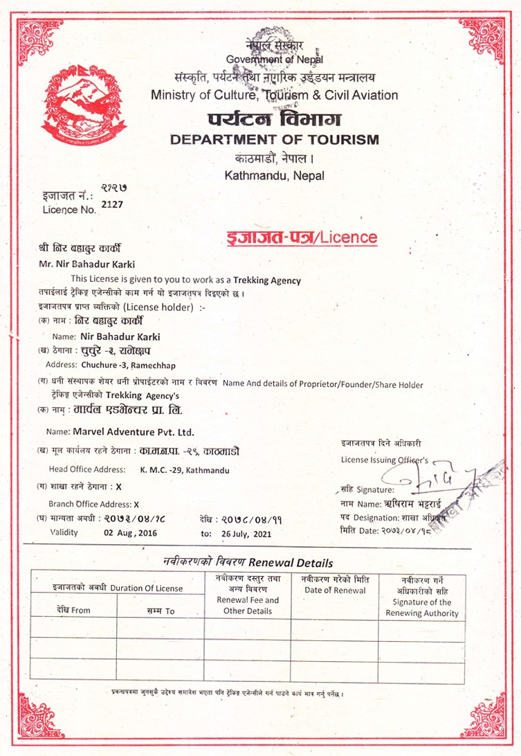 There is no need to look any further for the best trekking company - Marvel Adventures is it!!! Not once did I ever feel that things were not being handled and I mean everything was taken care of by Nir and his team. Our guide Phinjo was more than I could have ever wished for - his knowledge of the geography and culture allowed me to gain an absolute deep understanding of the region. Phinjo also made sure that every step was taken (literally and physically) as safe as possible. Additionally, other guides were seeking his advice and they were saying how he is probably the best trekking guide in all of Nepal (and I more than agree to this sentiment). Lastly, be sure to have a city tour led by Ra Ju - he is an absolute joy and encyclopedia of knowledge, sure to educate you about ALL things Nepal. Marcel Adventures is worth ten stars!