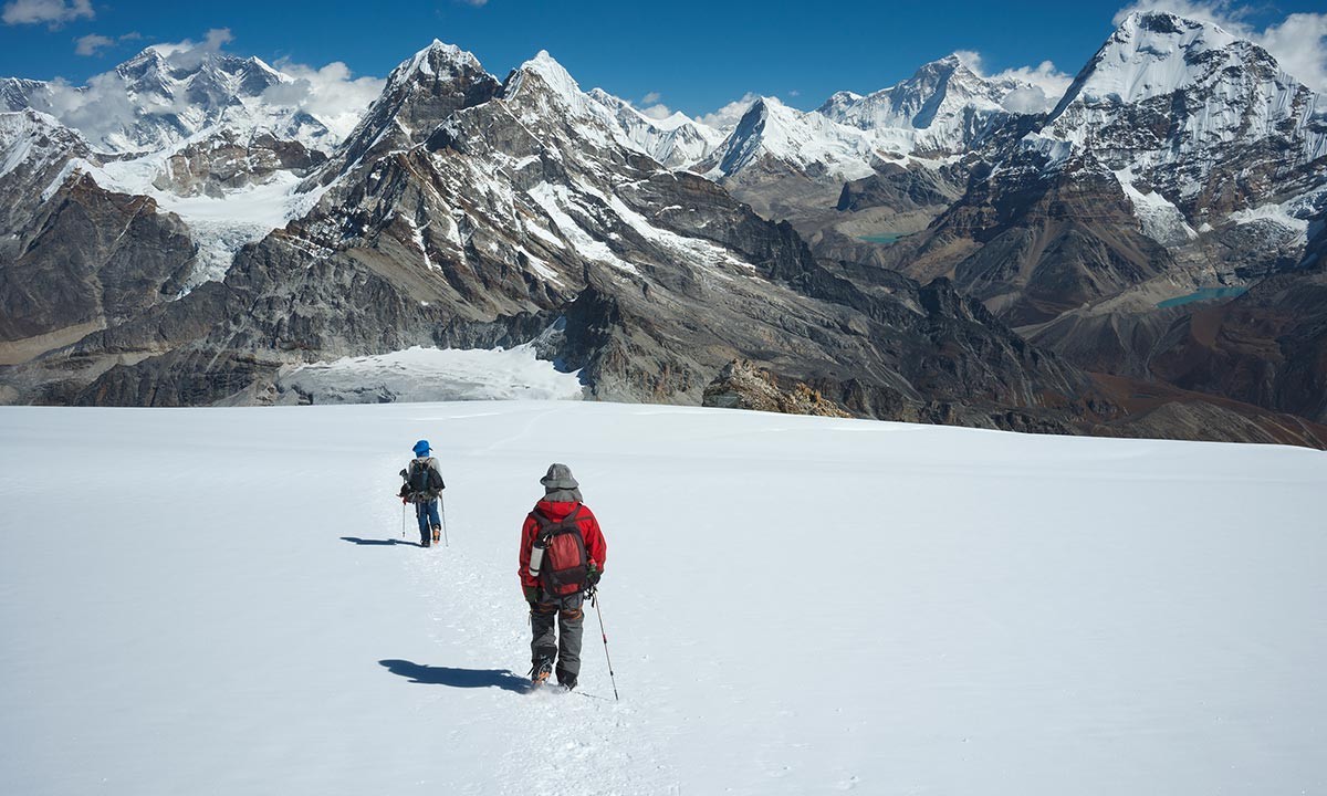 Mera Peak Climbing is one of the few Himalayan expeditions that can be completed within three weeks; following the remote virgin territory of the Hinku Valley, this expedition explores the northward prospects of the Khumbu region. An ideal Himalayan exploration for both beginners; who dream of conquering the 8,000-meter class massifs in the Himalayas and seasonal mountaineers who want to extend their Himalayan portfolio. This immersive, exhilarating adventure redefines the journey of solitude on an off-beaten path exploring the Himalayan wilderness. And leads to the summit that rewards the expeditioners with spectacular views of the five of the highest mountains in the world; Everest, Makalu, Kanchenjunga, Lhotse, and Cho Oyu.